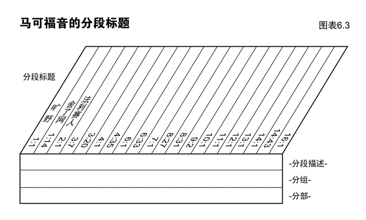 ① 如图表6.3所示,首先认清楚马可福音二十个段落的次序。为帮助以后查考之用,请在圣经中画下各段开首的第一句。(我们稍后会交代各段划分的理由)
