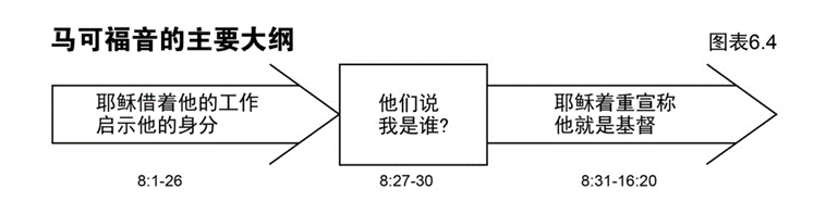 请留意8章27-37节中,耶稣的问题和彼得的答案。下面的图表6.4是马可福音的主要大纲,请细读。