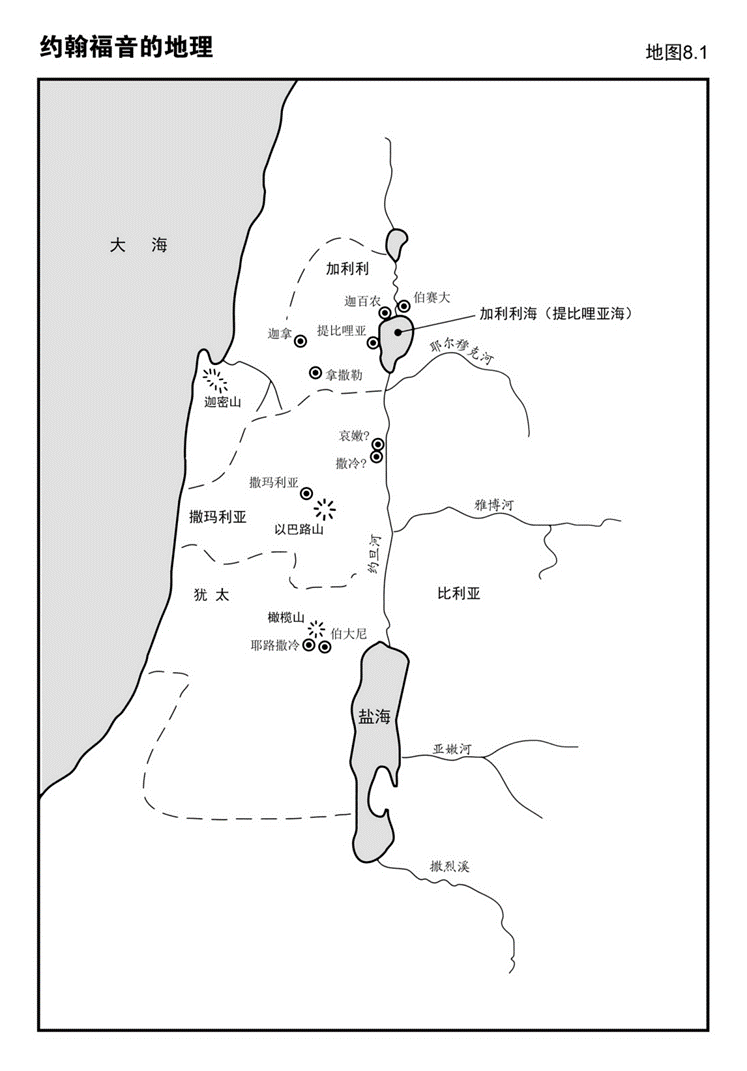 我们可从地图8.1找到约翰福音提及的地方。综览这卷福音书时,请参阅此地图。