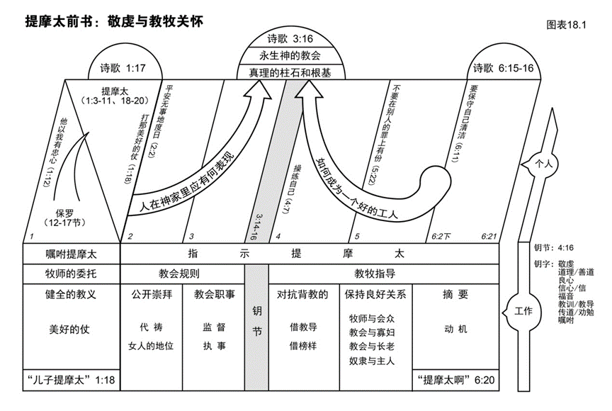 ④ 留意图表右部那个大纲指示:个人和工作。这是保罗在信中最多写到的两个主题。例如第1章嘱咐提摩太如何成为其后内容的一个适切导言?