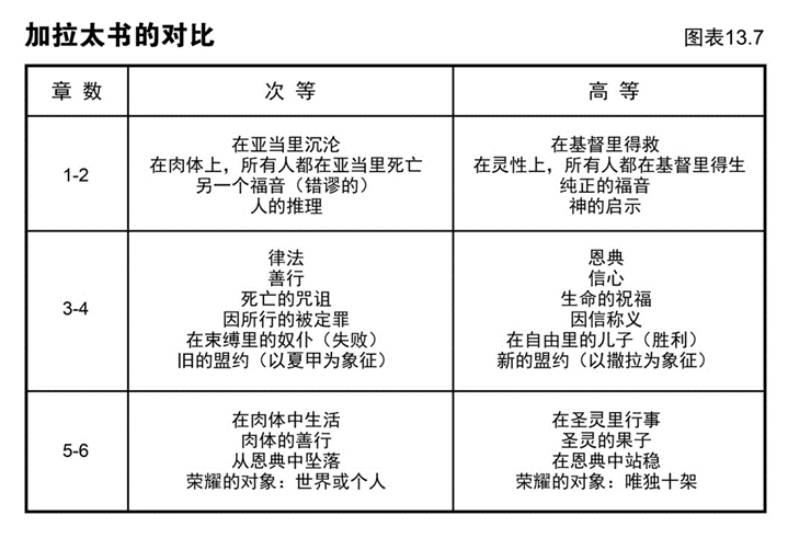 加拉太书的内容充满对比。注意图表13.7的对比中出现了多少个钥字。[9]