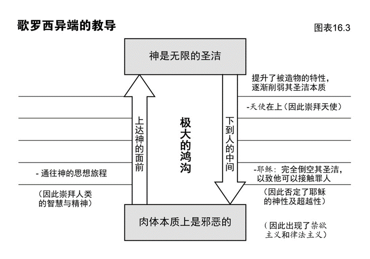 图表16.3展示了歌罗西异端的思辨教义之基础。细心观察以下各点。