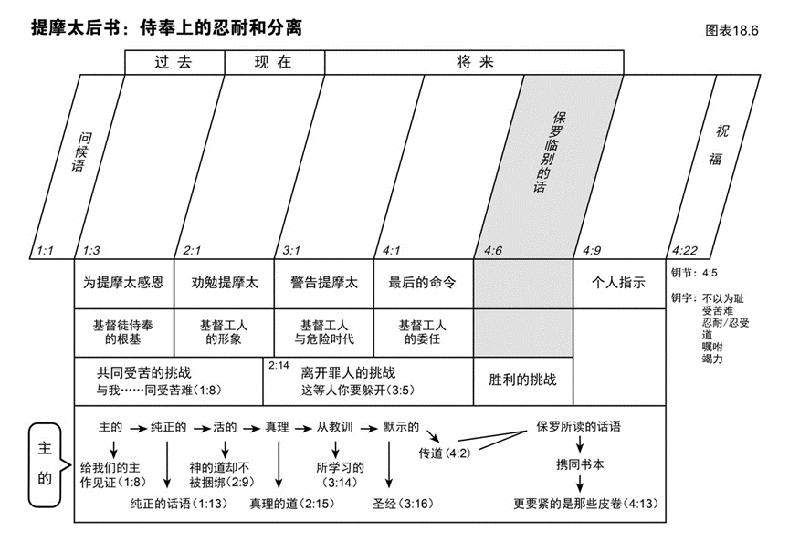 ④ 留意图表右部那个大纲指示:个人和工作。这是保罗在信中最多写到的两个主题。例如第1章嘱咐提摩太如何成为其后内容的一个适切导言?