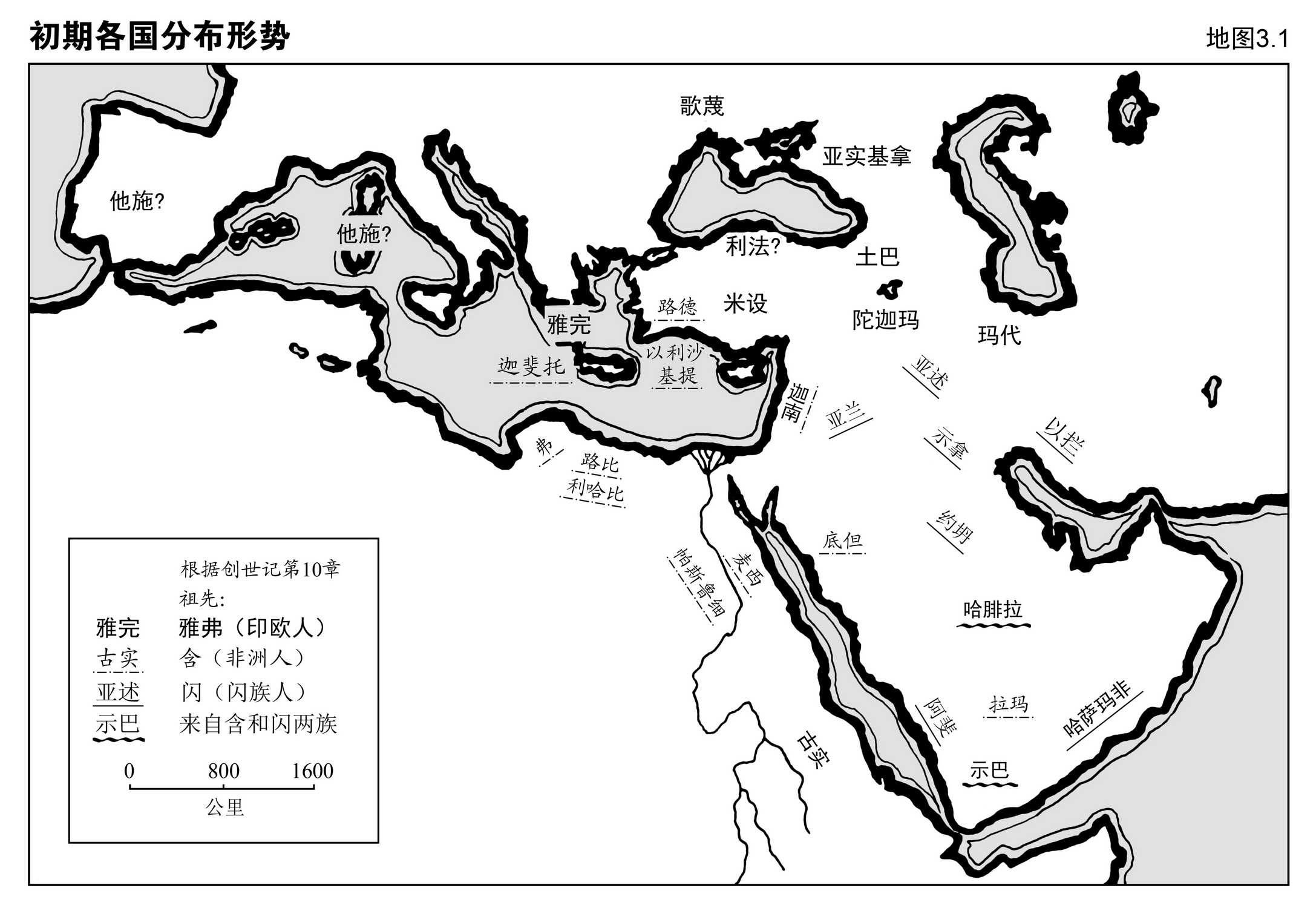 ⑩ 试将创世记所载的事与地图1.1各区对照。第1至11章谈到的人类种族问题发生于哪个地方?这些事件的遗迹在哪里?