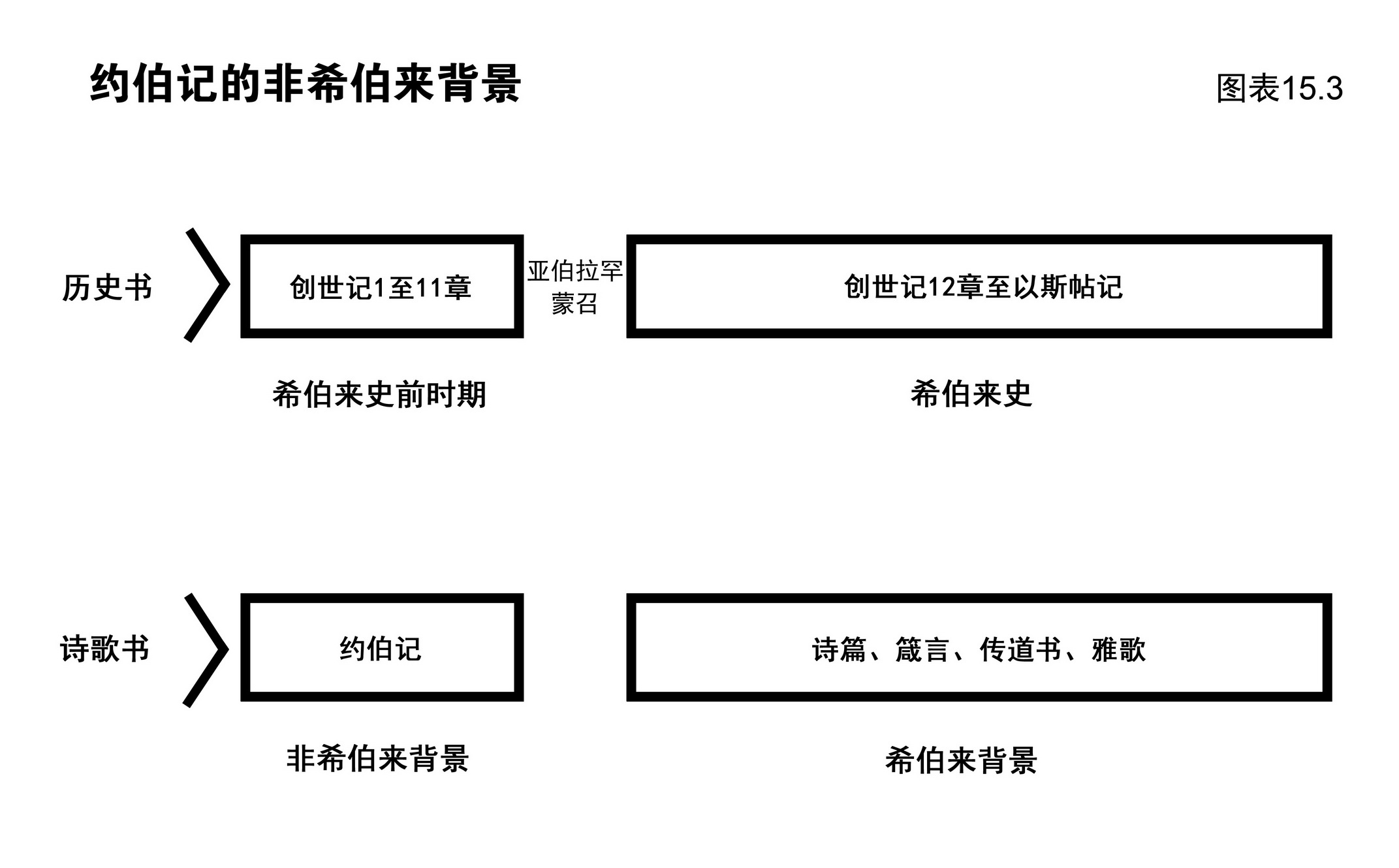 图表15.是约伯记综览,书的结构可以从不同的大纲看出,请参照图表15.4以完成下列指定的功课。