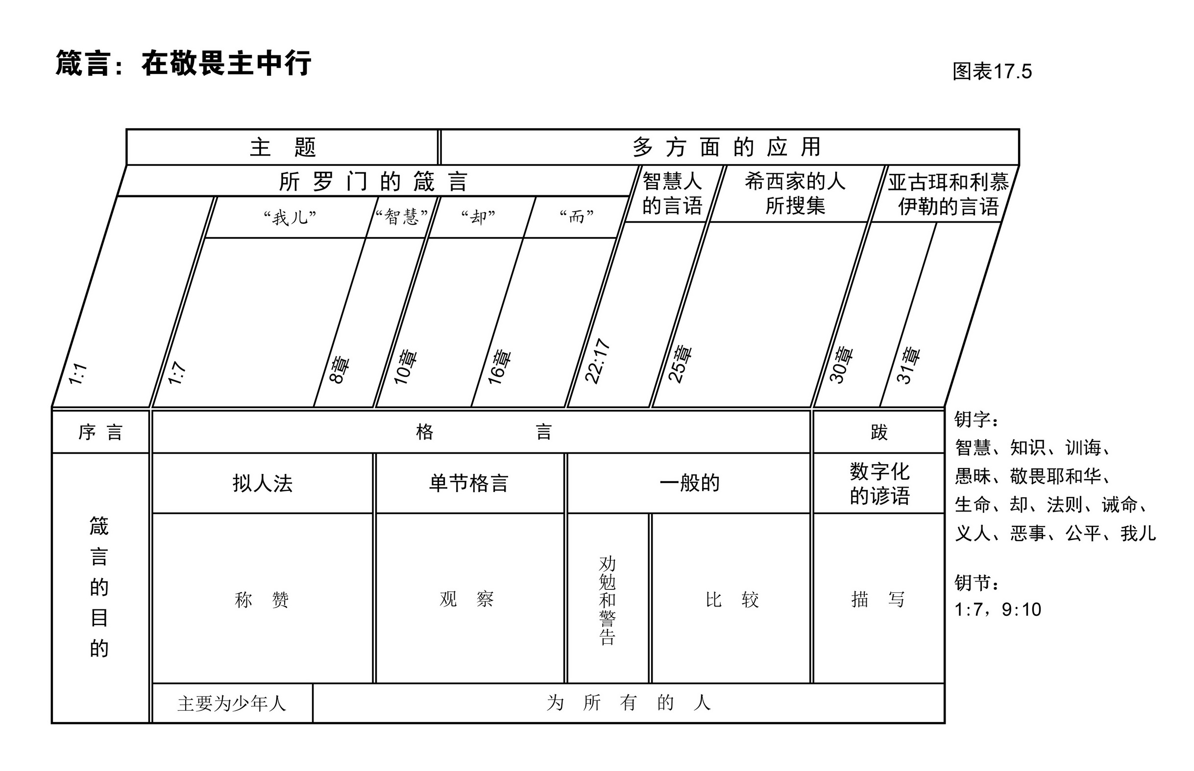 图表17.5已经把箴言的各部分及内容大纲清楚划分。请依据图表17.5回答下列问题。
